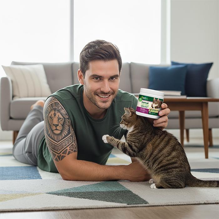 Our cat hairball supplement is specially formulated to support cats of all ages in reducing hairball buildup. Hairballs can be a common issue in cats causing discomfort and digestive disturbances. Our supplement contains essential ingredients that promote healthy digestion and help reduce the formation of hairballs.